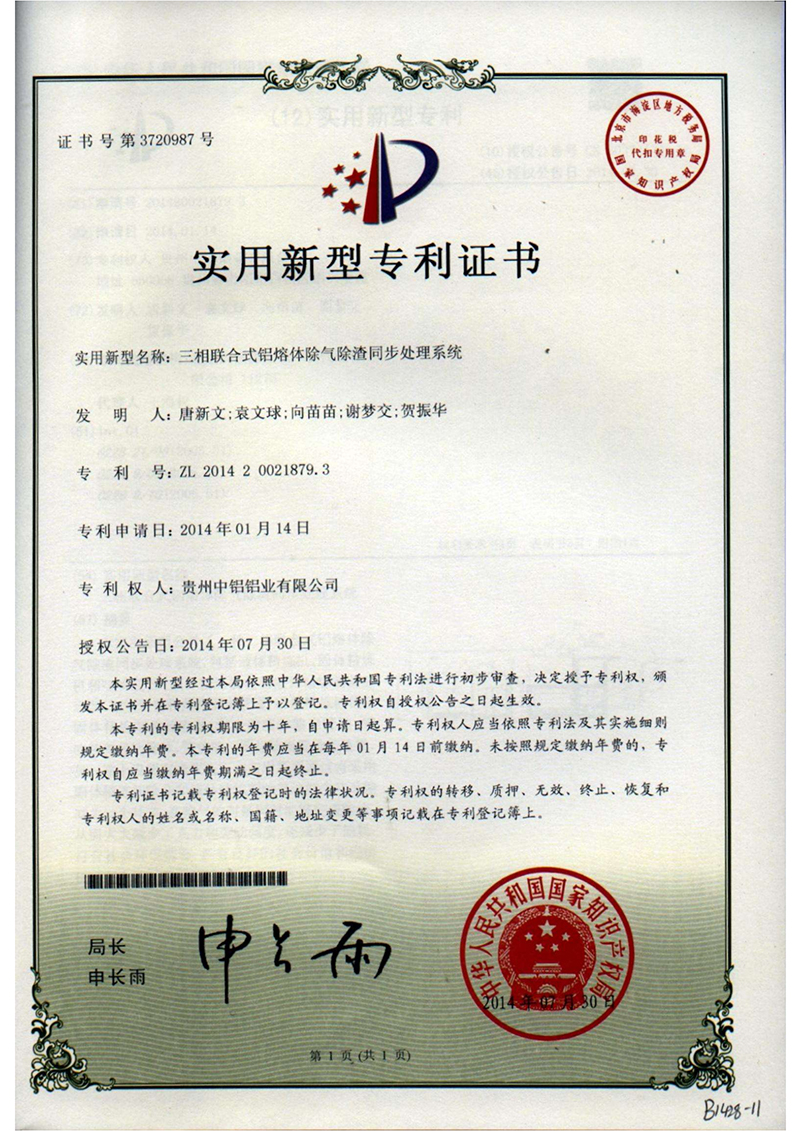 實(shí)用新型專利證書(shū)