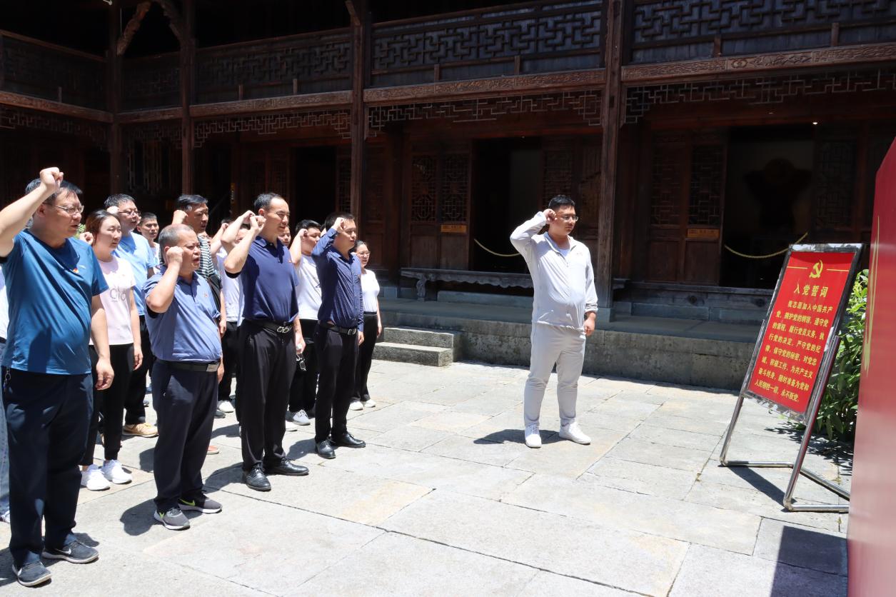 “我志愿加入中國共產(chǎn)黨,擁護(hù)黨的綱領(lǐng),遵守黨的章程,履行黨員義務(wù),執(zhí)行黨的決定……”面對鮮紅的黨旗,全體黨員在支部書記、董事長朱玉才同志的帶領(lǐng)下莊嚴(yán)宣誓,重溫這錚錚誓言。